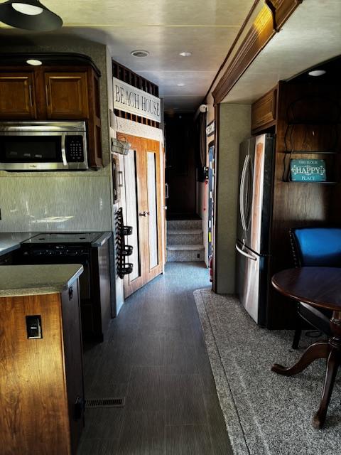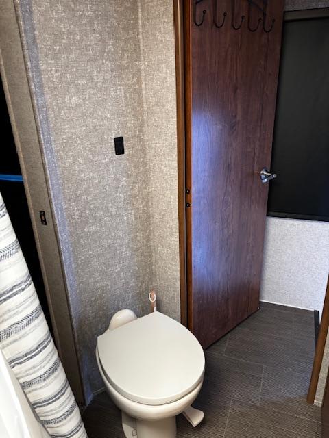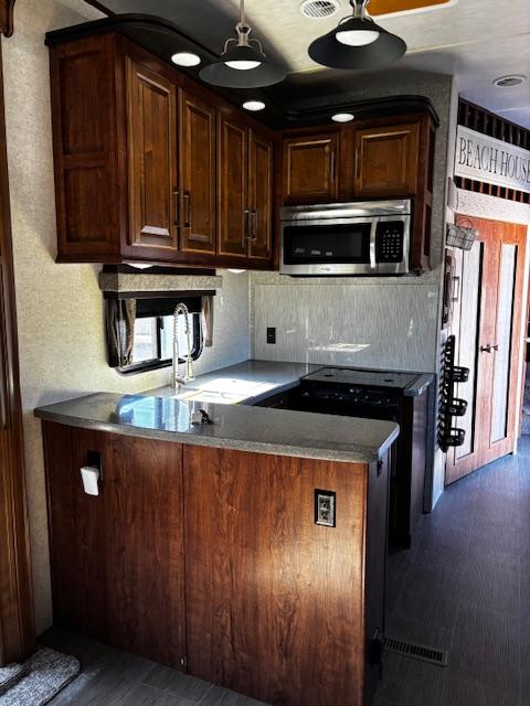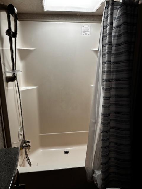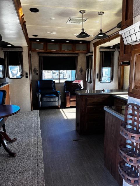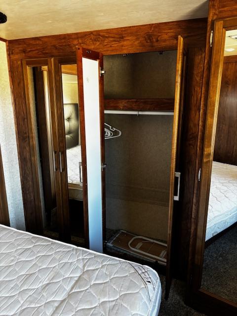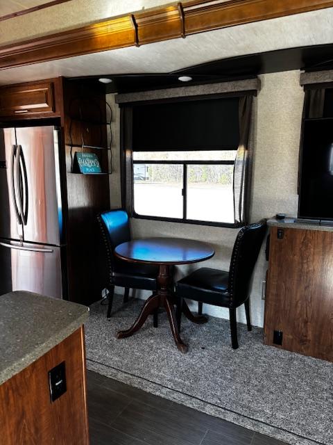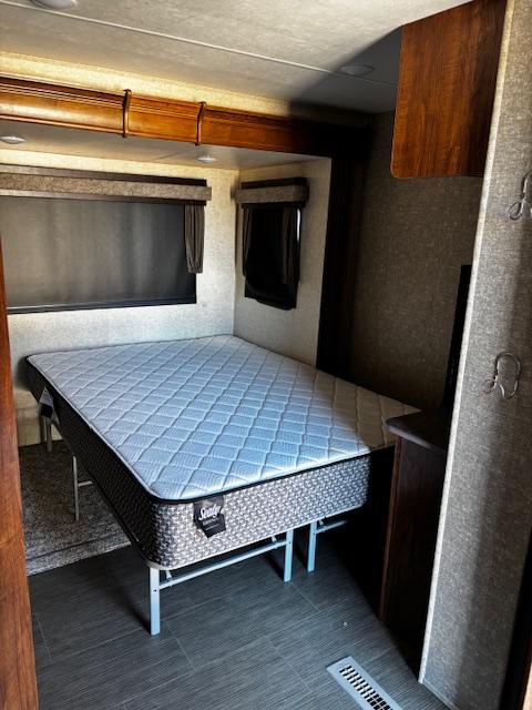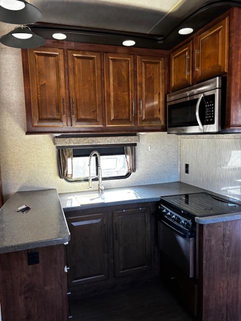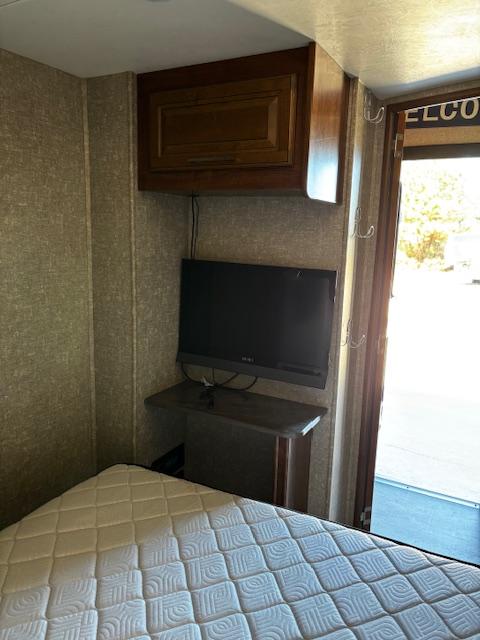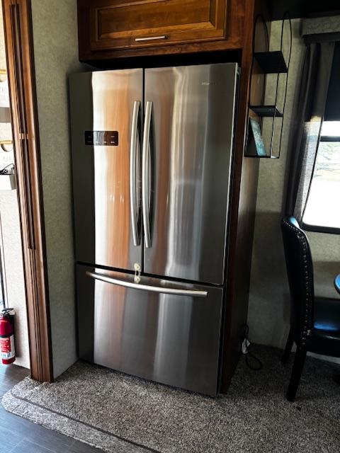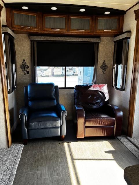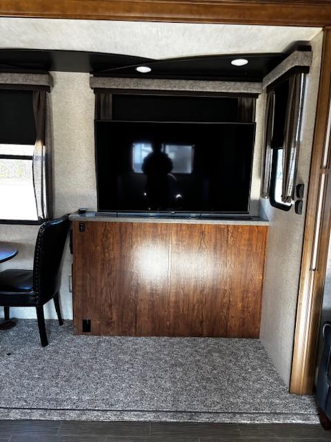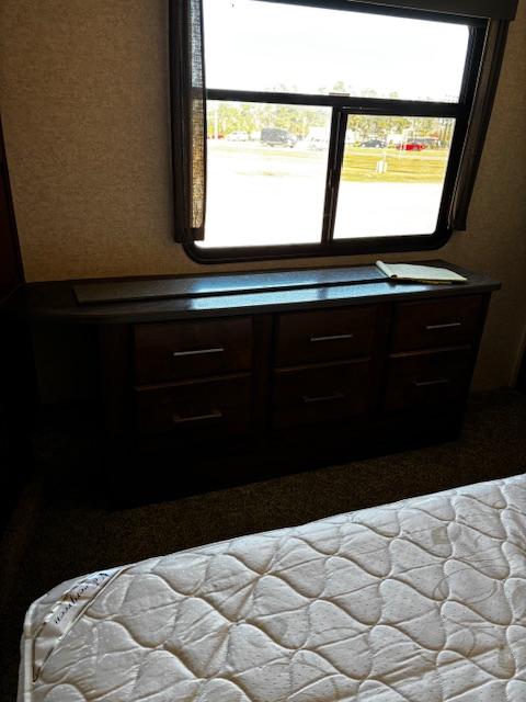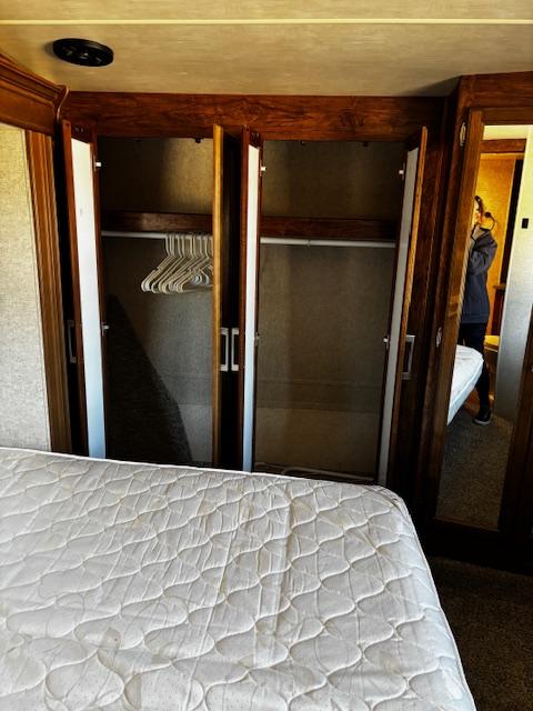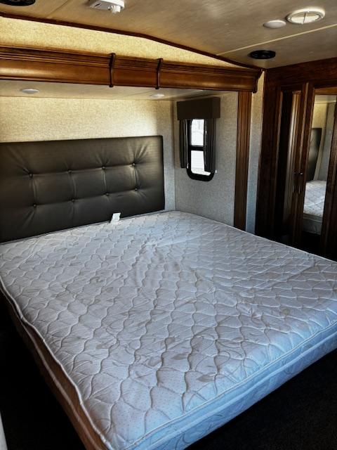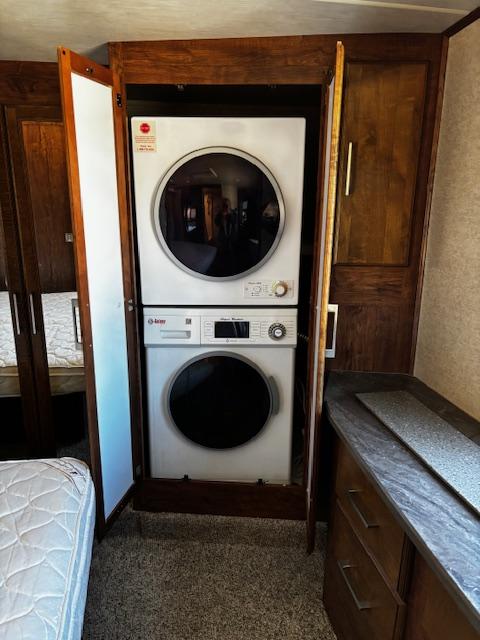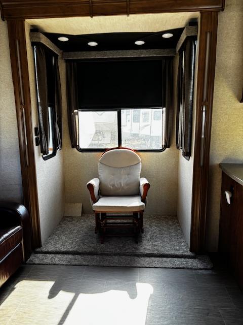 WOW!!! YOU CAN NOT GO WRONG WITH THIS ONE. THIS HAS SO MANY POSSIBILITIES, WHETHER YOU WORK FROM HOME AND HAVE A GOOD SIZE FAMILY. OUTSIDE YOU WILL FIND A 6-POINT HYDRAULIC LEVELING SYTEMS, 4 SLIDES, WITH SLIDE TOPPERS, POWER AWNING, REAR LADDER, SPARE TIRE, ALUMINUM ENTRY STEPS, OUTSIDE SPEAKERS, WATER BAY, FULL PASS THRU STORAGE, FRONT STORAGE AT PIN BOX AREA, WITH INVERTER. WHEN YOU WALK INSIDE, YOU WILL FIND REAR LIVING QUARTERS, WITH A GLIDER ROCKER, 1 ROCKER RECLINER, AND 1 CHAIR, (TALK ABOUT MAKING IT YOUR OWN), TV. IN THE KITCHEN, YOU HAVE A NICE U-SHAPE KITCHEN WITH RESIDENTIAL REFRIGERATOR, MICROWAVE, 3-BURNER STOVE WITH OVEN, DOUBLE KITCHEN SINK, NICE CABINET AND COUNTER SPACE. HERE IS WHERE IT GETS FUN!!–YOU HAVE A SEPERATE BEDROOM OFF TO THE SIDE FROM THE KITCHEN, USE IT A BEDROOM OR IT WILL MAKE A “GREAT OFFICE” SPACE. NEXT YOU HAVE AN ADDITIONAL LOFT AREA FOR SLEEPING AS YOU GO UP THE STAIRS. NEXT YOU WILL FIND THE BATHROOM, WITH JACK-AND-JILL DOORS, A TUB/SHOWER, SINK WITH VANITY AND MIRRORED MEDICINE CABINET. IN THE MASTER BEDROOM, YOU HAVE A KING SIZE BED, DRESSER WITH TV LIFT, LARGE MIRRORED CLOSET AND TO TOP IT OFF, A STACKABLE WASHER AND DRYER.