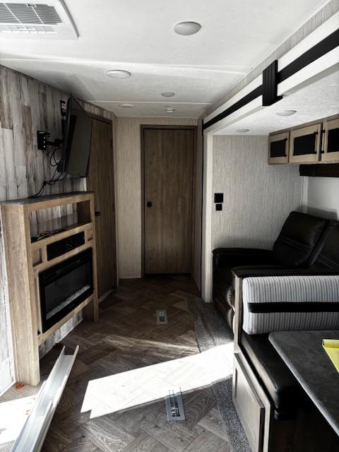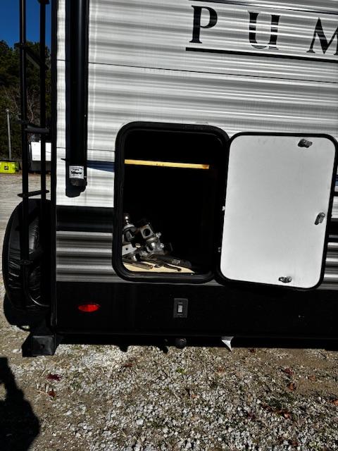 NICE STARTER CAMPER. INTERESTED IN CAMPING, THIS IS THE ONE. OUTSIDE, UNIT HAS 2 ENTRY DOORS, POWER TONGUE JACK, POWER FRONT AND REAR STABILIZERS, REAR LADDER, SPARE TIRE, CARGO CARRIER, POWER AWNING, OUTDOOR SPEAKERS, MOR/RYDE ENTRY STEP, OUTSIDE SHOWER, OUTSIDE MINI FRIDGE AND GRILL, AND 2 SLIDES. INSIDE IS A FRONT KITCHEN WITH MICROWAVE, 3-BURNER STOVE W/OVEN, 12V REFRIGERATOR, AND LARGE SINGLE BASIN SINK. DINETTE BOOTH, 2 RECLINERS, FIREPLACE, JACK & JILL DOORS TO BATHROOM, CURVED GLASS SHOWER, SINK WITH VANITY AND MIRROR. BEDROOM HAS FULL SIZE BED, NICE SIZE CLOSET AND DRESSER DRAWERS. HAVE TO SEE IT TO WANT IT!
