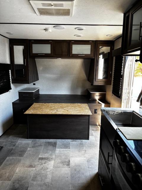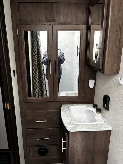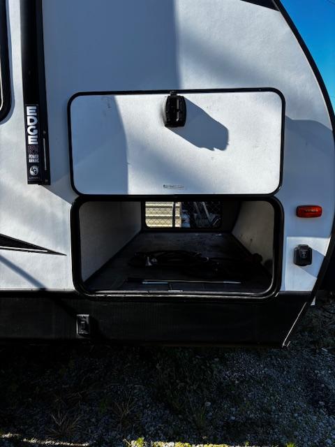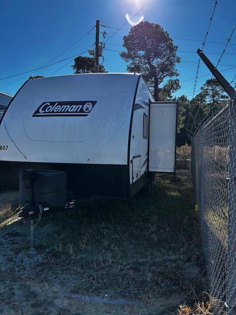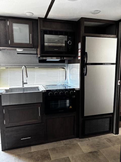 HOW CUTE IS THIS. OPEN FLOOR PLAN WITH AREA FOR QUEEN SIZE MATTRESS,MIRRORED OPPOSING CABINETS AT BED, OVERHEAD CABINETS AT BED SOFA THAT MAKES INTO A BED, GAS/ELECTRIC REFRIGERATOR, MICORWAVE, 3-BURNER STOVE WITH OVEN, BASIN STYLE KITCHEN SINK, FIREPLACE, BATHROOM IN REAR OF CAMPER WITH SHOWER, SINK W/VANITY, MIRRORED MEDICINE CABINET, LINEN CLOSET WITH DRAWERS IN BATHROOM. OUTSIDE: POWER TONGUE JACK, FRONT AND REAR ELECTRIC STABILIZERS, 1 SLIDE, SOLID/STEP ENTRY DOOR STEP, POWER AWNING, OUTSIDE SPEAKERS, OUTDOOR SHOWER, SPARE TIRE, PASS THRU STORAGE, BACK UP CAMERA. CONVEYS WITH HITCH FOR TOWING